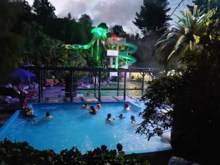 Families will love the hydroslides, warm water playground, and interactive water features, providing hours of entertainment for kids while adults relax in the nearby mineral pools. For a more peaceful experience, the indoor private pools offer a quiet, secluded soak ideal for couples or anyone wanting extra privacy. Taupō DeBretts also features shaded areas, seating, and beautifully landscaped surroundings, making it a year-round geothermal retreat. Whether you’re visiting for a day of relaxation, a family outing, or a romantic escape, the Taupō DeBretts Hot Springs experience combines natural wellness, scenic beauty, and pure Taupō hospitality in one unforgettable setting.